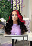 With matching closure. Natural color w/ red patch in front. Loose curls added.