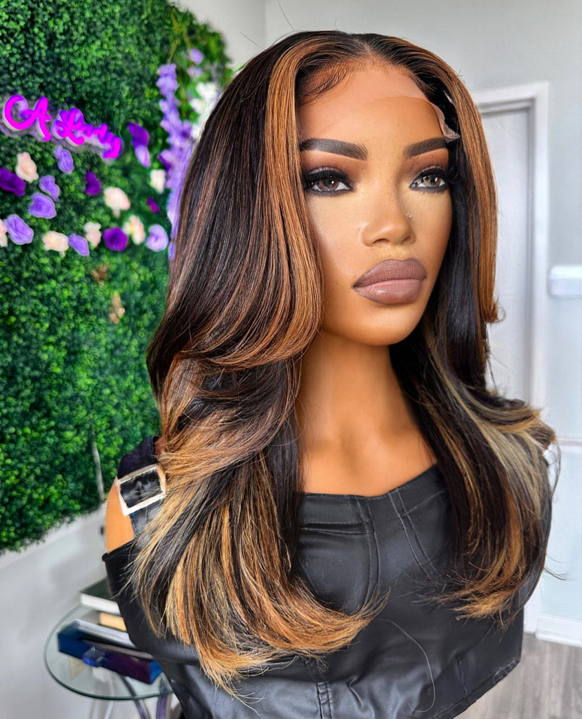 Style: Face framing layers & pressed Bone straight w/ bumped ends